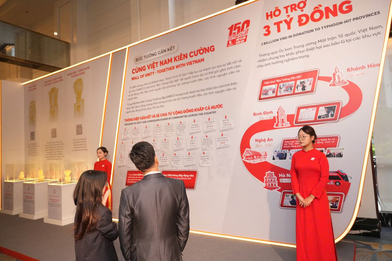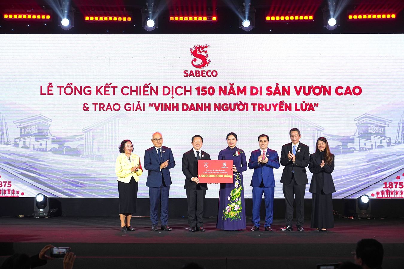 Cùng với tinh thần đó, tại Lễ Tổng kết Chiến dịch “150 Năm Di Sản Vươn Cao”, SABECO và Công ty TNHH Vietnam Beverage (VietBev) đã trao tặng 1,5 tỷ đồng vào thông qua Ủy ban Trung ương Mặt trận Tổ quốc Việt Nam, nhằm hỗ trợ cộng đồng địa phương tại khu vực Nam Trung Bộ tái thiết cuộc sống sau những thiệt hại gây ra bởi các đợt bão lũ vừa qua. Ông Thapana Sirivadhanabhakdi, đại diện VietBev, đã thay mặt trao khoản hỗ trợ này tới bà Hà Thị Nga, Phó Chủ tịch Ủy ban Trung ương MTTQVN.